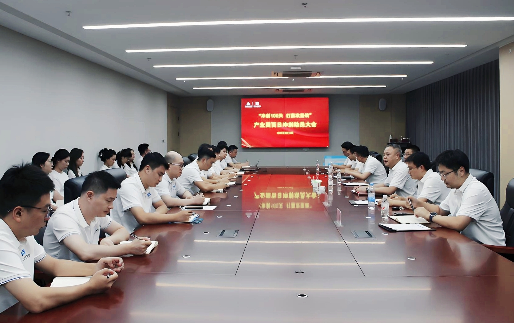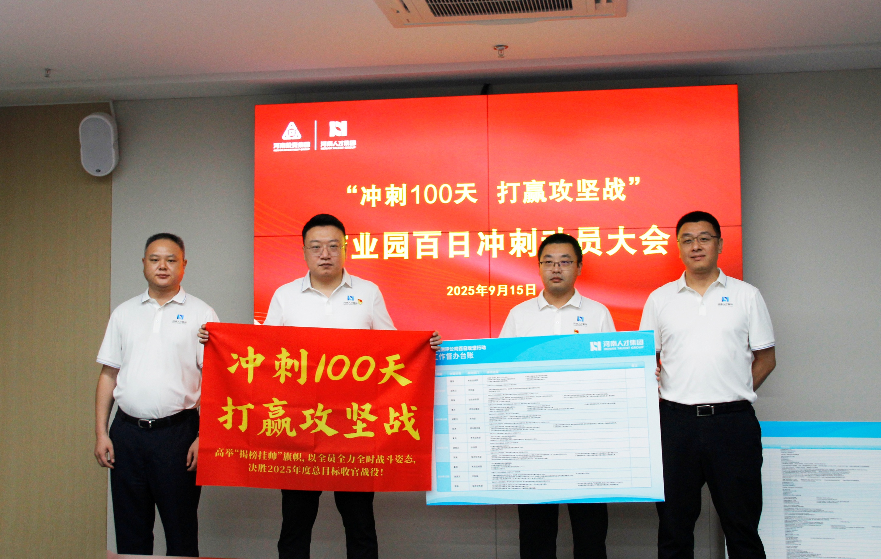 号角嘹亮,征程再启。产业园发展、产业园运营、考试测评公司全体员工将以更饱满热情、更昂扬斗志、更充足干劲,挂图作战、倒排工期,全力以赴投入百日冲刺攻坚战,以优异成绩向省人才集团交上一份满意答卷,努力为打造国家级人力资源产业园全国标杆贡献力量。