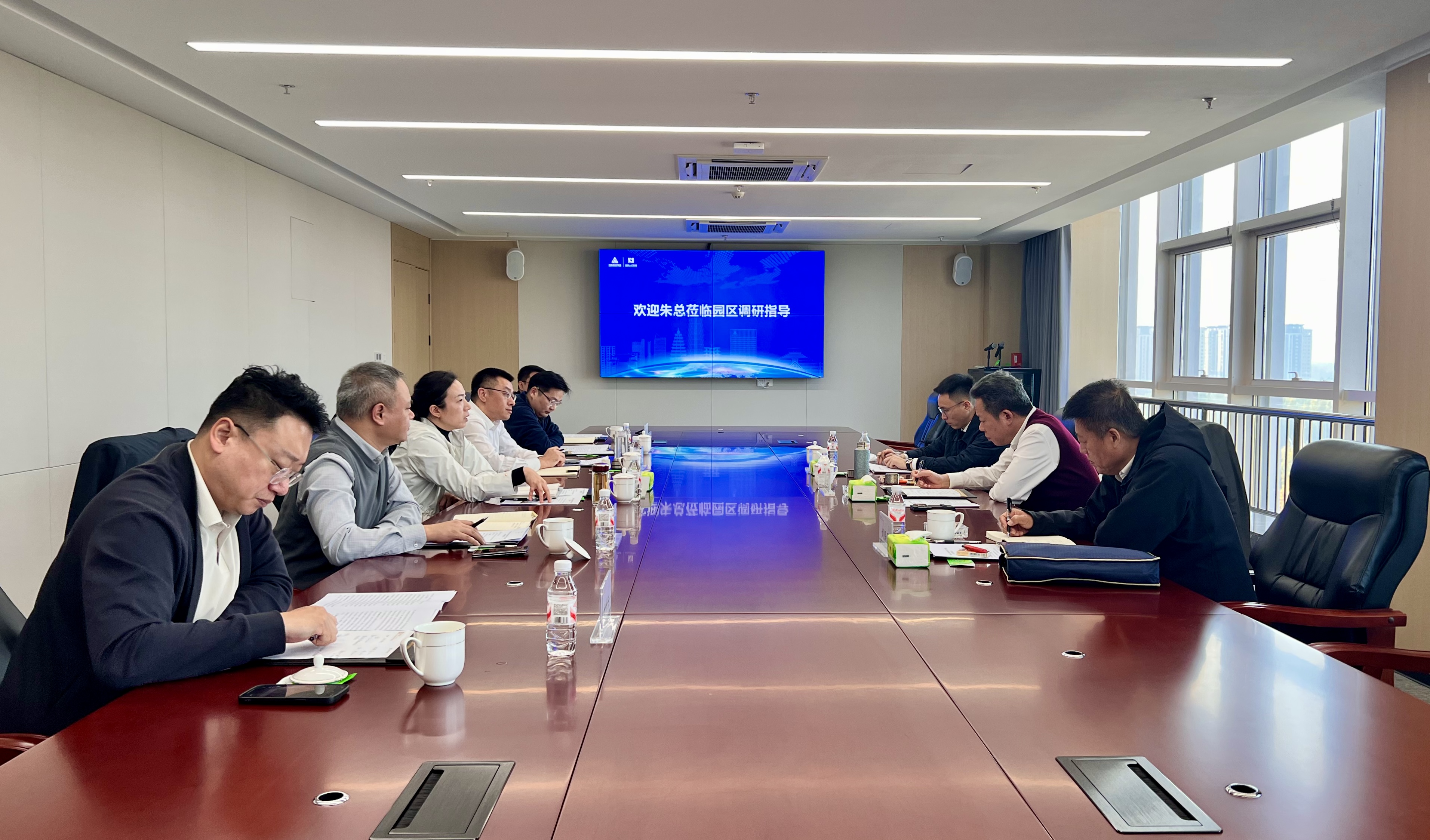 河南投资集团运营管理部主任刘保强、国际业务部副主任程骁男,产业园发展、产业园运营、考试测评公司领导班子等参加调研。